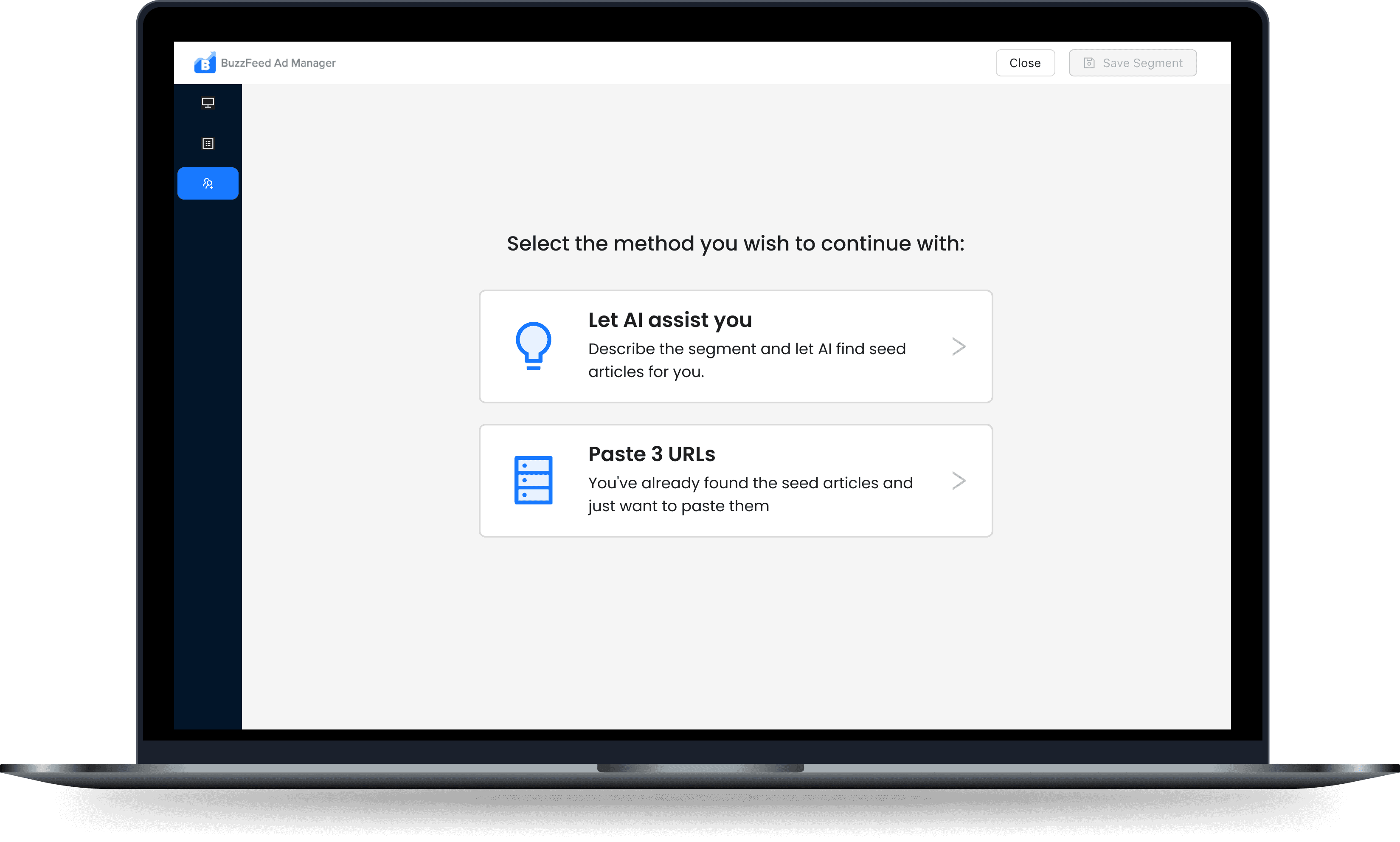 First option will allow you to do a simple prompt. AI will analyse and select matching articles to be your seed articles.