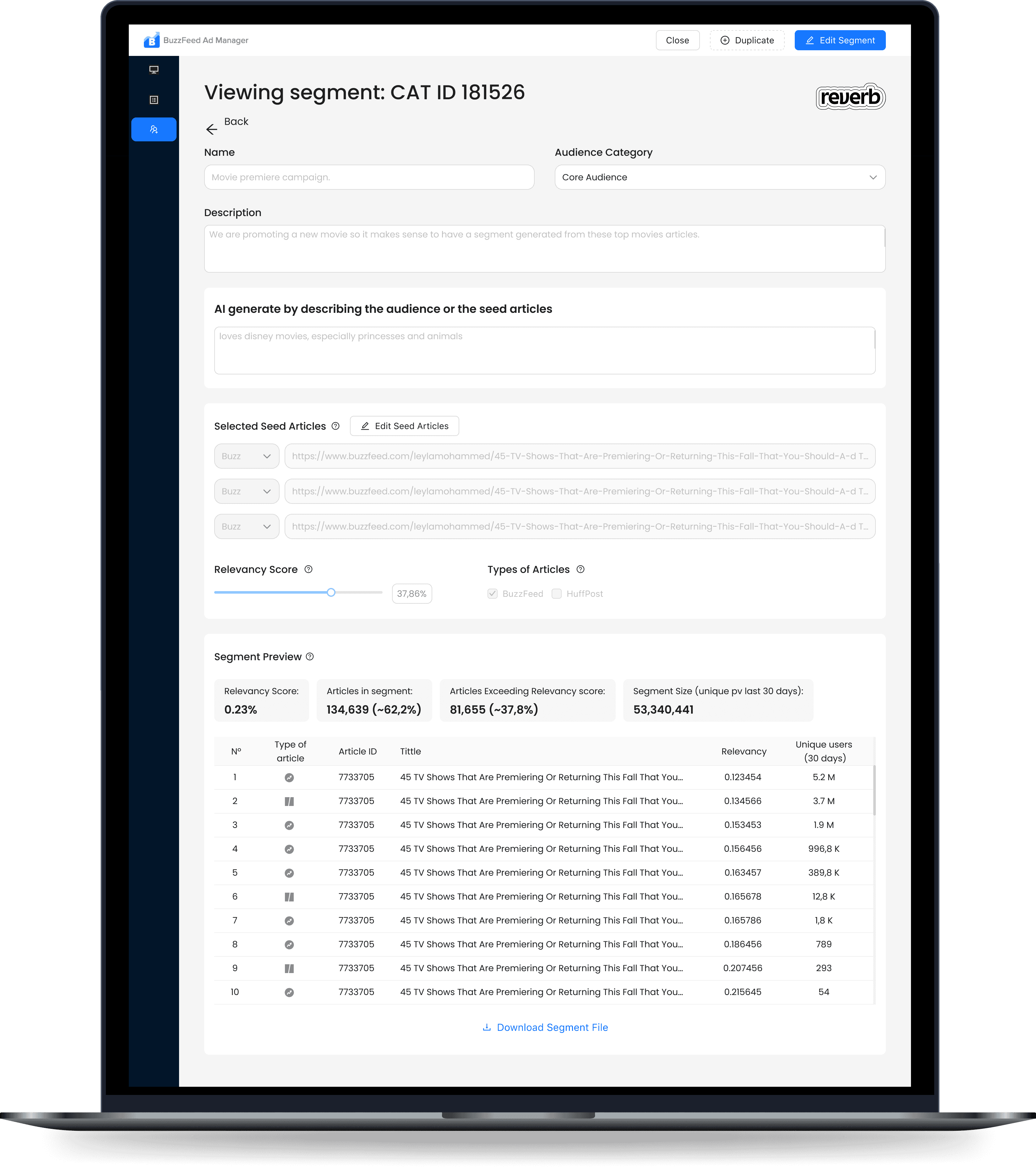 Example: “People interested in home organization and interior design.”The AI analyzes the prompt and correlates it with existing content themes, article embeddings, and audience signals across BuzzFeed’s content ecosystem.