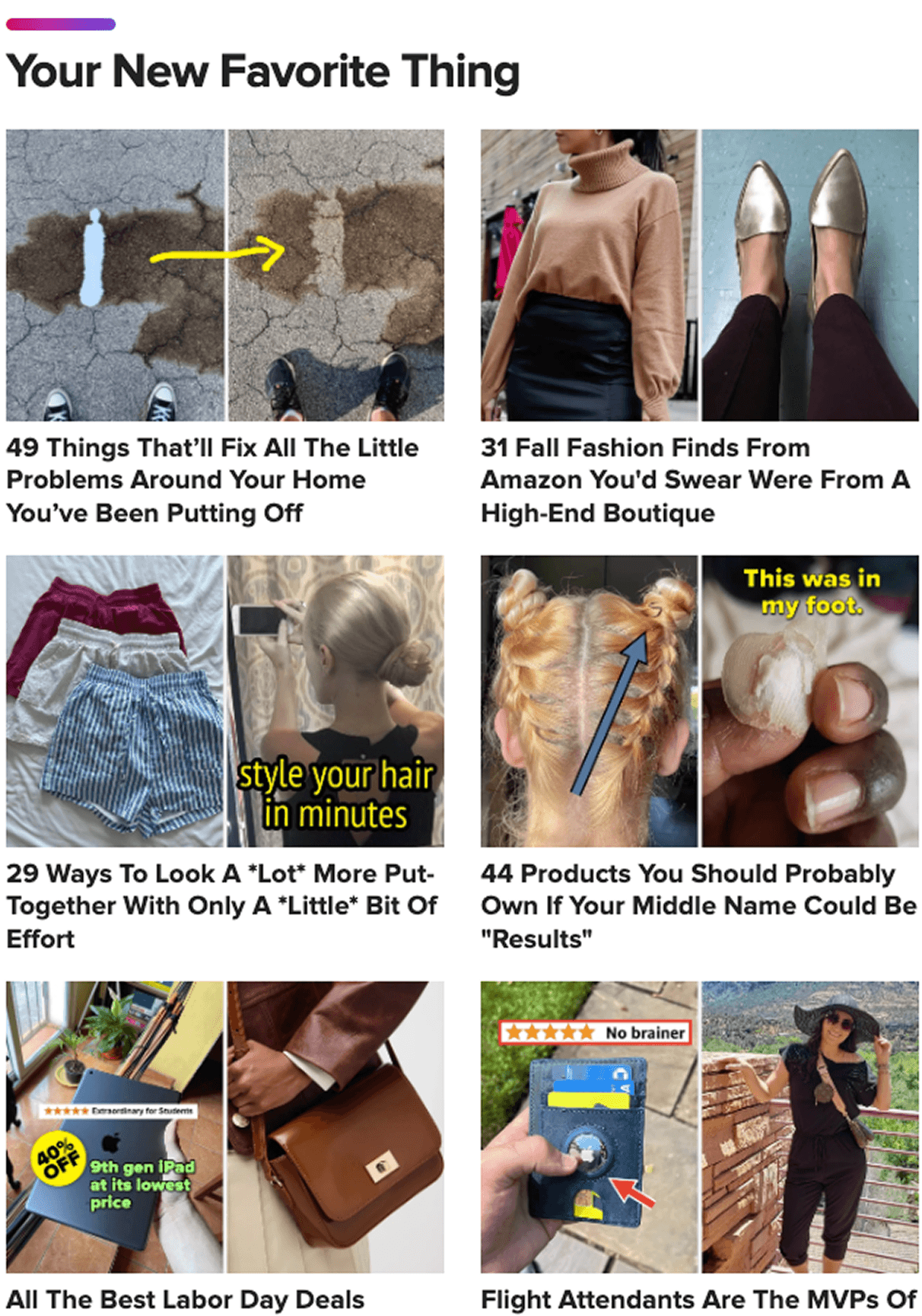 BuzzFeed shopping articles are structured as curated product lists, but the bottom-of-article experience was underperforming — despite being a high-intent section for users already engaged with the content.